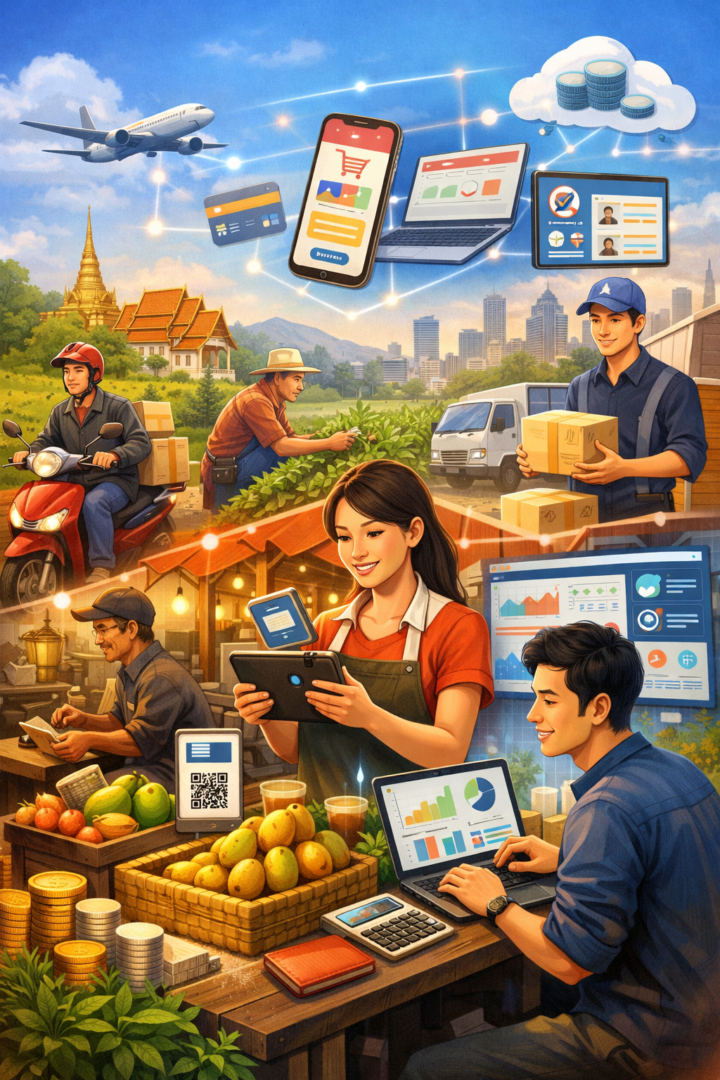 การค้าขายออนไลน์ถือเป็นหนึ่งในเครื่องมือสำคัญที่ช่วยเพิ่มความสามารถในการแข่งขันให้กับ SMEs สตาร์ทอัพต่างๆ ในประเทศไทยได้สร้างแพลตฟอร์มที่ช่วยให้ธุรกิจขนาดเล็กสามารถดำเนินการขายสินค้าออนไลน์ได้อย่างง่ายดาย ไม่ว่าจะเป็นผ่านแพลตฟอร์มตลาดออนไลน์หรือโซเชียลมีเดียต่างๆ สตาร์ทอัพเหล่านี้ช่วยให้ SMEs สามารถจัดการคำสั่งซื้อ การชำระเงิน การส่งสินค้า และการสื่อสารกับลูกค้าได้ในที่เดียว สิ่งนี้ช่วยลดความยุ่งยากในการทำธุรกิจ และทำให้ธุรกิจขนาดเล็กสามารถขยายธุรกิจได้โดยไม่ต้องลงทุนในระบบไอทีที่ซับซ้อน
